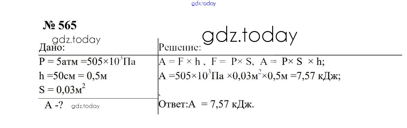 На страницах сайта gdz.today вы найдете учебный и вспомогательный материал, направленный на улучшения знаний школьной программы. ГДЗ - онлайн мир знаний Работа и мощность. Энергия Решение. 7 класс 565 Сборнику задач по Физике для 7-9 класса Перышкин, Лонцова Экзамен УМК 2016