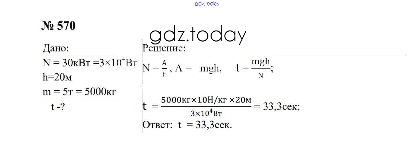 На страницах сайта gdz.today вы найдете учебный и вспомогательный материал, направленный на улучшения знаний школьной программы. ГДЗ - онлайн мир знаний Работа и мощность. Энергия Решение. 7 класс 570 Сборнику задач по Физике для 7-9 класса Перышкин, Лонцова Экзамен УМК 2016
