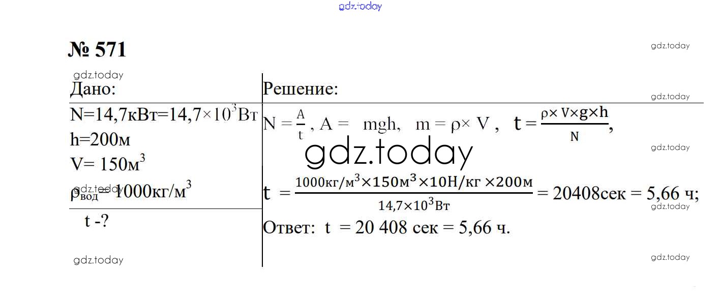 На страницах сайта gdz.today вы найдете учебный и вспомогательный материал, направленный на улучшения знаний школьной программы. ГДЗ - онлайн мир знаний Работа и мощность. Энергия Решение. 7 класс 571 Сборнику задач по Физике для 7-9 класса Перышкин, Лонцова Экзамен УМК 2016