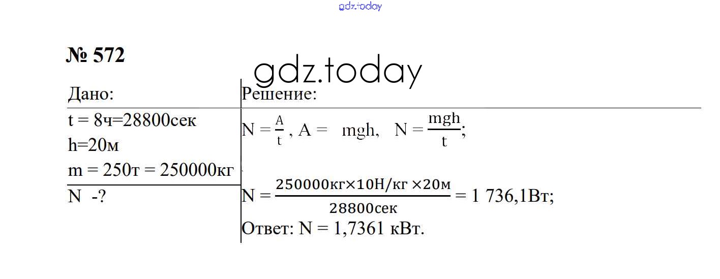 На страницах сайта gdz.today вы найдете учебный и вспомогательный материал, направленный на улучшения знаний школьной программы. ГДЗ - онлайн мир знаний Работа и мощность. Энергия Решение. 7 класс 572 Сборнику задач по Физике для 7-9 класса Перышкин, Лонцова Экзамен УМК 2016