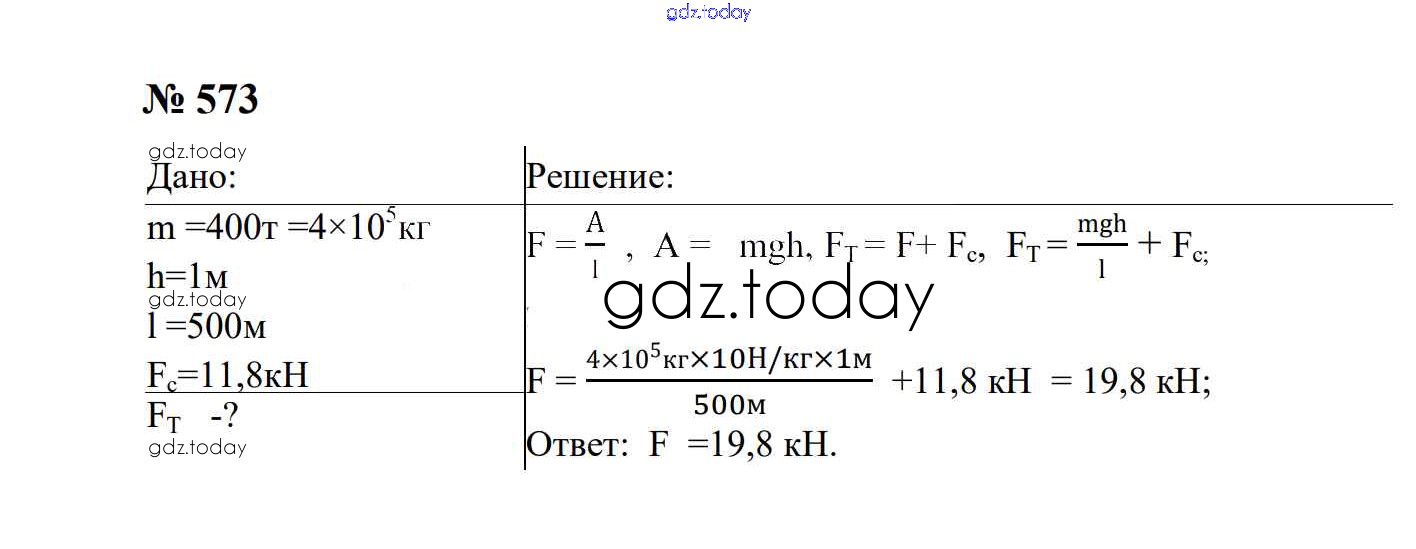 Ответы к Работа и мощность. Энергия Решение. 7 класс 573 Сборнику задач по Физике для 7-9 класса Перышкин, Лонцова Экзамен УМК 2016