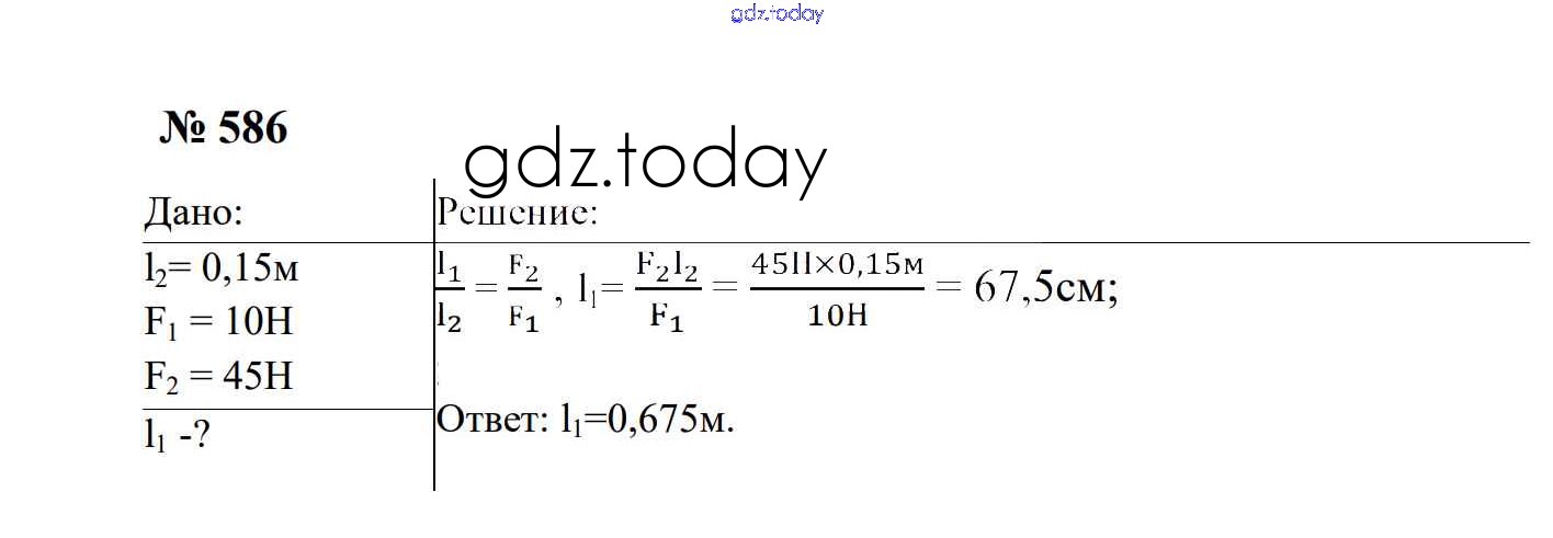 Ответы к Работа и мощность. Энергия Решение. 7 класс 586 Сборнику задач по Физике для 7-9 класса Перышкин, Лонцова Экзамен УМК 2016