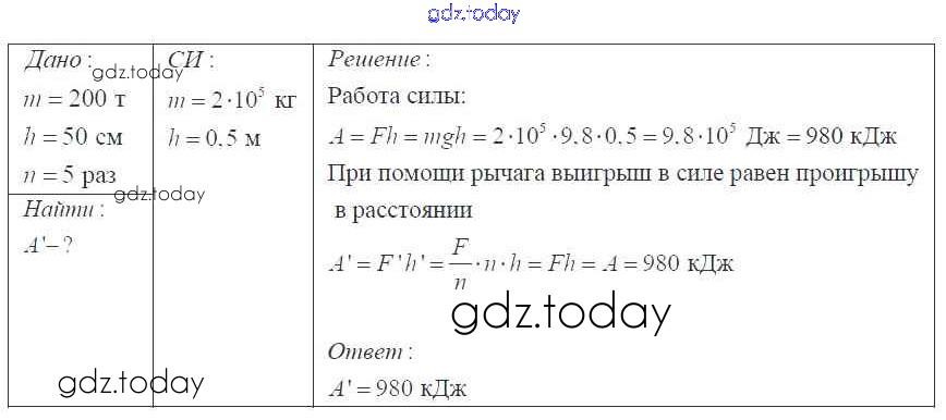 Ответы к Работа и мощность. Энергия Решение 7 класс 595 Сборнику задач по Физике для 7-9 класса Перышкин, Лонцова Экзамен УМК 2016