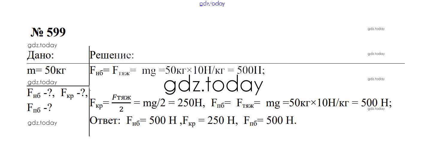 Ответы к Работа и мощность. Энергия Решение. 7 класс 599 Сборнику задач по Физике для 7-9 класса Перышкин, Лонцова Экзамен УМК 2016