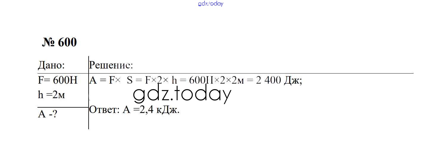 На страницах сайта gdz.today вы найдете учебный и вспомогательный материал, направленный на улучшения знаний школьной программы. ГДЗ - онлайн мир знаний Работа и мощность. Энергия Решение. 7 класс 600 Сборнику задач по Физике для 7-9 класса Перышкин, Лонцова Экзамен УМК 2016