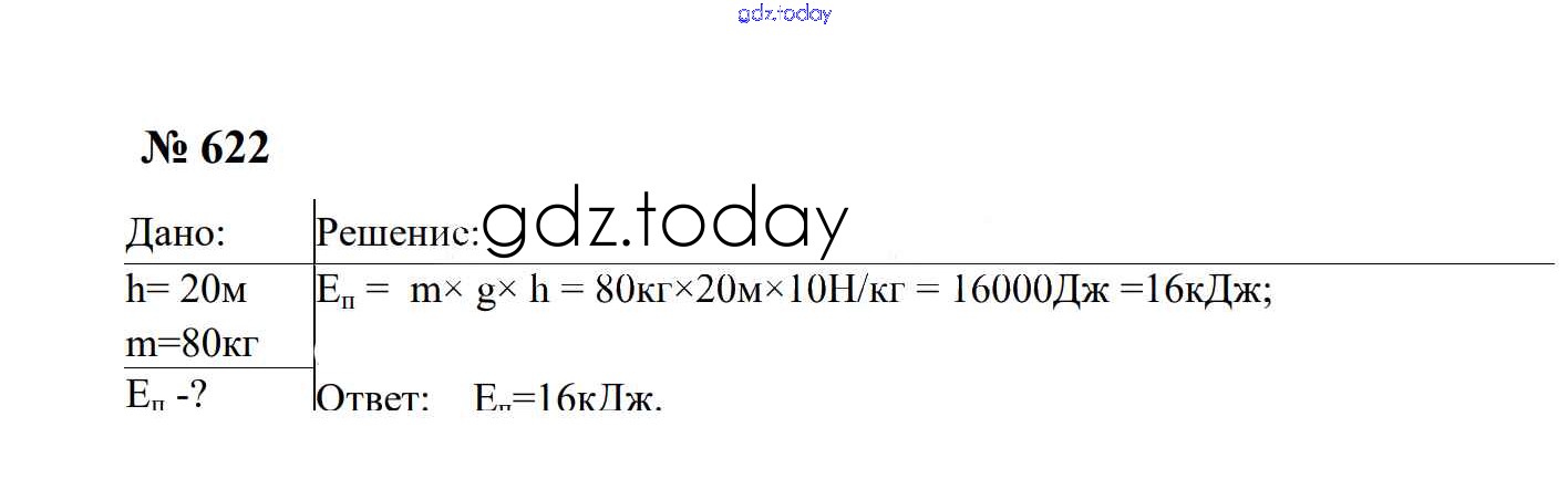 Ответы к Работа и мощность. Энергия Решение. 7 класс 622 Сборнику задач по Физике для 7-9 класса Перышкин, Лонцова Экзамен УМК 2016