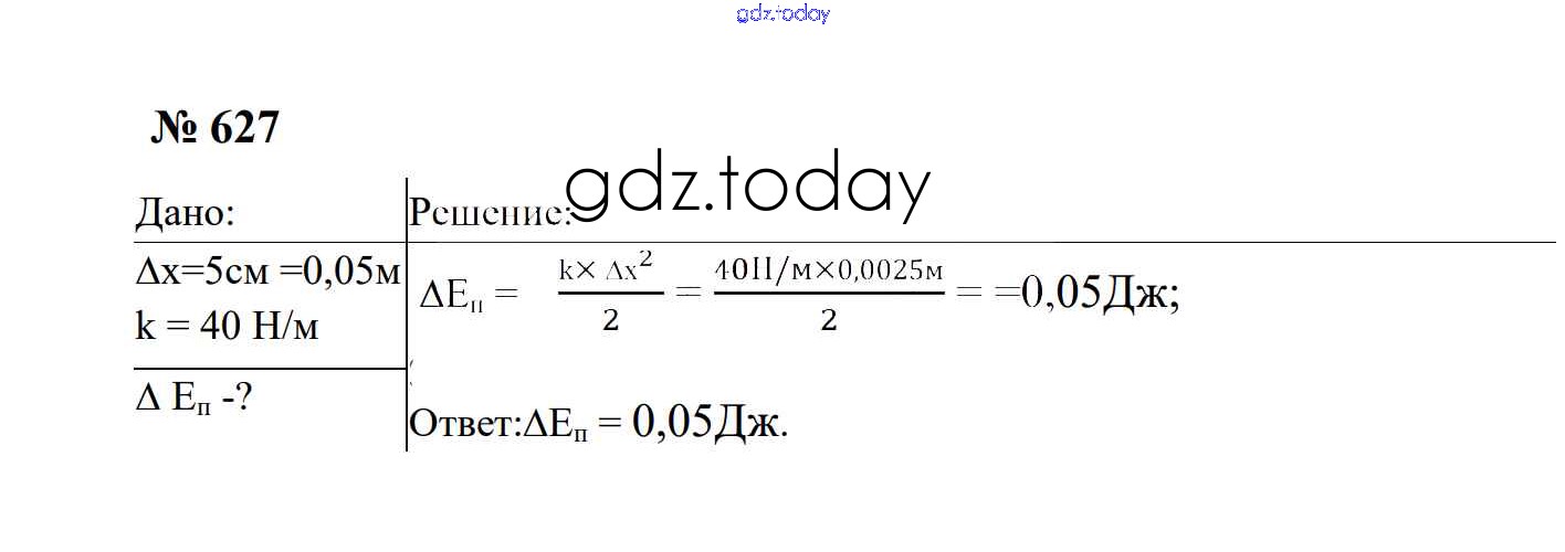 На страницах сайта gdz.today вы найдете учебный и вспомогательный материал, направленный на улучшения знаний школьной программы. ГДЗ - онлайн мир знаний Работа и мощность. Энергия Решение. 7 класс 627 Сборнику задач по Физике для 7-9 класса Перышкин, Лонцова Экзамен УМК 2016