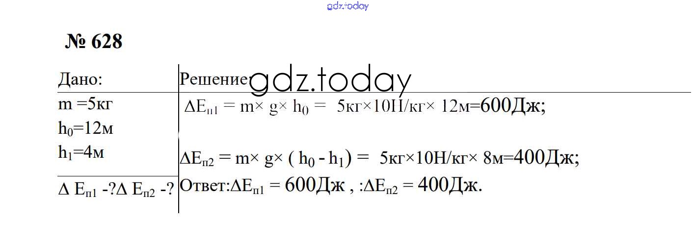 Ответы к Работа и мощность. Энергия Решение. 7 класс 628 Сборнику задач по Физике для 7-9 класса Перышкин, Лонцова Экзамен УМК 2016