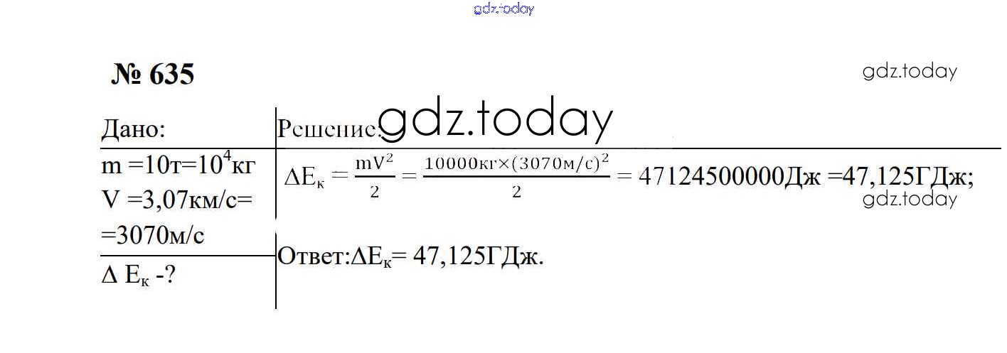 Ответы к Работа и мощность. Энергия Решение. 7 класс 635 Сборнику задач по Физике для 7-9 класса Перышкин, Лонцова Экзамен УМК 2016