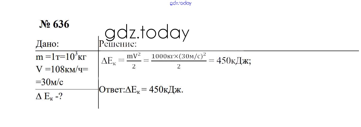 Ответы к Работа и мощность. Энергия Решение. 7 класс 636 Сборнику задач по Физике для 7-9 класса Перышкин, Лонцова Экзамен УМК 2016