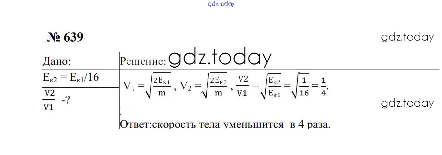 На страницах сайта gdz.today вы найдете учебный и вспомогательный материал, направленный на улучшения знаний школьной программы. ГДЗ - онлайн мир знаний Работа и мощность. Энергия Решение. 7 класс 639 Сборнику задач по Физике для 7-9 класса Перышкин, Лонцова Экзамен УМК 2016