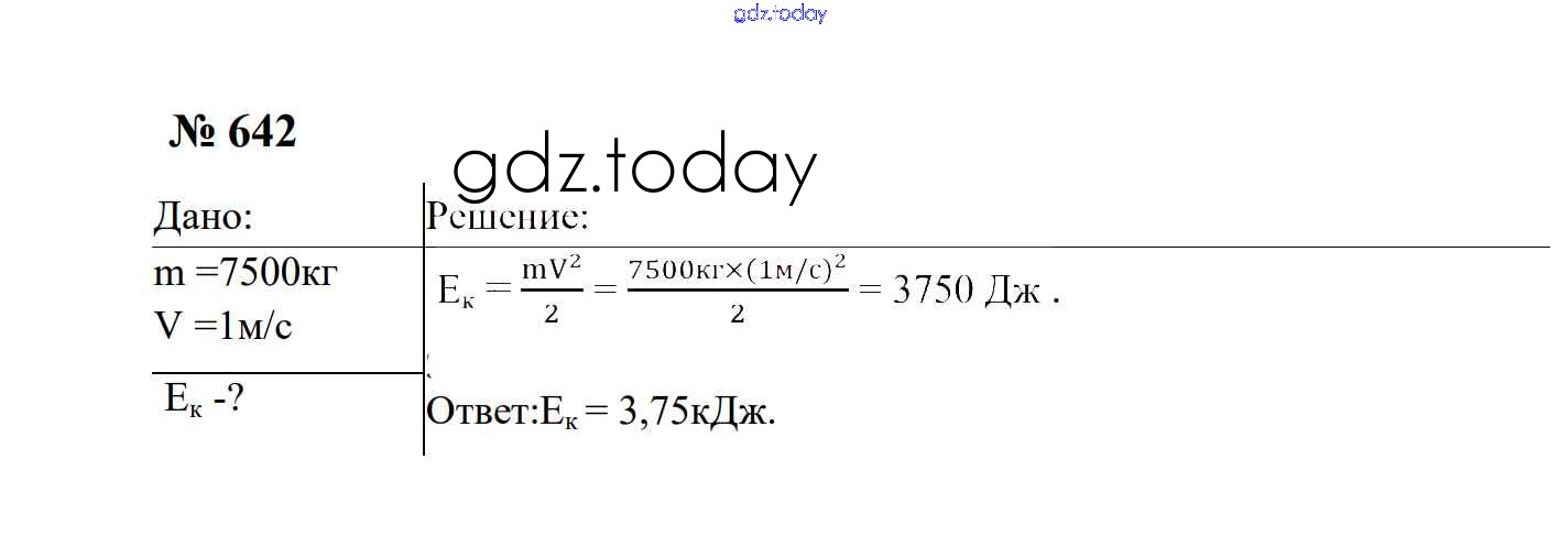 Ответы к Работа и мощность. Энергия Решение. 7 класс 642 Сборнику задач по Физике для 7-9 класса Перышкин, Лонцова Экзамен УМК 2016