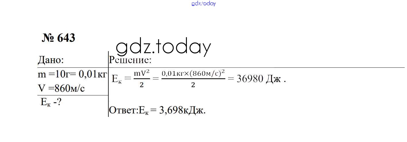 Ответы к Работа и мощность. Энергия Решение. 7 класс 643 Сборнику задач по Физике для 7-9 класса Перышкин, Лонцова Экзамен УМК 2016