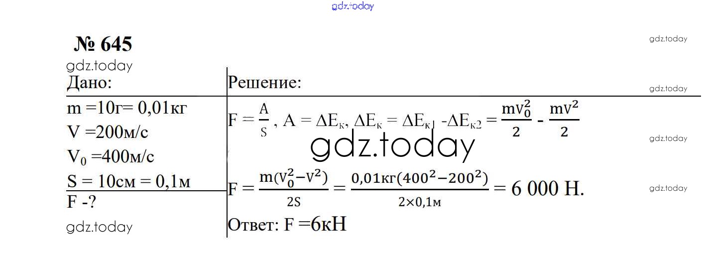 На страницах сайта gdz.today вы найдете учебный и вспомогательный материал, направленный на улучшения знаний школьной программы. ГДЗ - онлайн мир знаний Работа и мощность. Энергия Решение. 7 класс 645 Сборнику задач по Физике для 7-9 класса Перышкин, Лонцова Экзамен УМК 2016