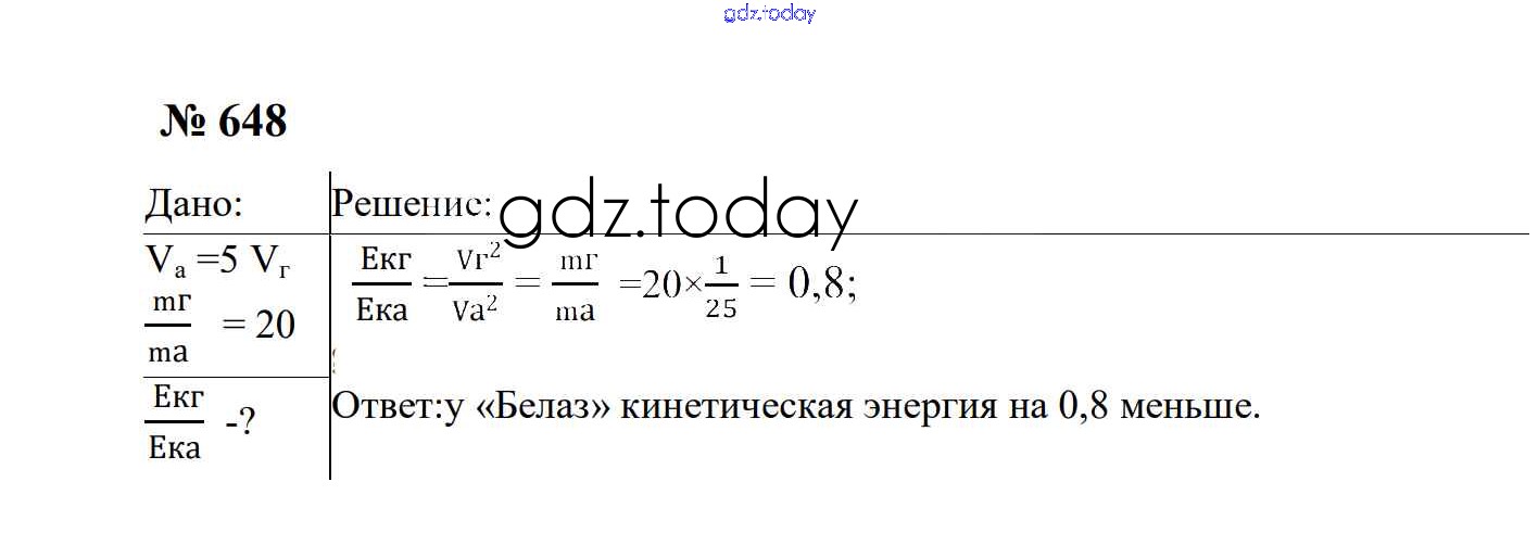 На страницах сайта gdz.today вы найдете учебный и вспомогательный материал, направленный на улучшения знаний школьной программы. ГДЗ - онлайн мир знаний Работа и мощность. Энергия Решение. 7 класс 648 Сборнику задач по Физике для 7-9 класса Перышкин, Лонцова Экзамен УМК 2016