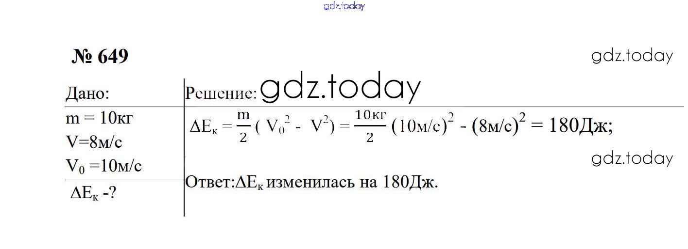 На страницах сайта gdz.today вы найдете учебный и вспомогательный материал, направленный на улучшения знаний школьной программы. ГДЗ - онлайн мир знаний Работа и мощность. Энергия Решение. 7 класс 649 Сборнику задач по Физике для 7-9 класса Перышкин, Лонцова Экзамен УМК 2016