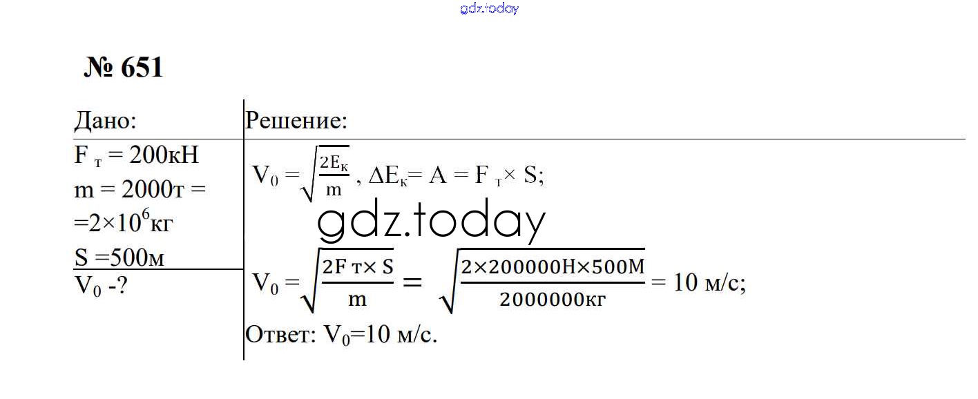 На страницах сайта gdz.today вы найдете учебный и вспомогательный материал, направленный на улучшения знаний школьной программы. ГДЗ - онлайн мир знаний Работа и мощность. Энергия Решение. 7 класс 651 Сборнику задач по Физике для 7-9 класса Перышкин, Лонцова Экзамен УМК 2016