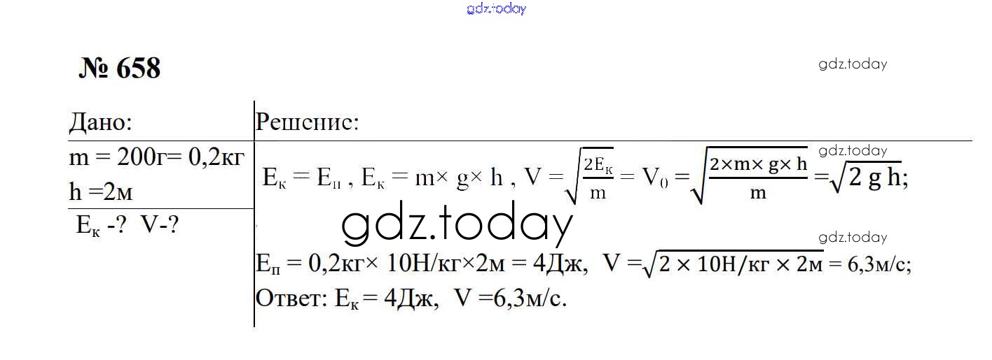 На страницах сайта gdz.today вы найдете учебный и вспомогательный материал, направленный на улучшения знаний школьной программы. ГДЗ - онлайн мир знаний Работа и мощность. Энергия Решение. 7 класс 658 Сборнику задач по Физике для 7-9 класса Перышкин, Лонцова Экзамен УМК 2016