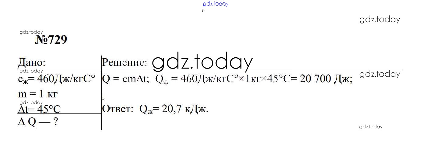 Ответы к Тепловые явления Решение. 8 класс 729 Сборнику задач по Физике для 7-9 класса Перышкин, Лонцова Экзамен УМК 2016