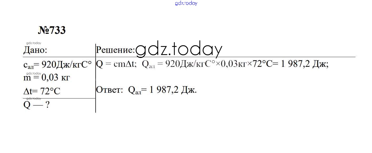 Ответы к Тепловые явления Решение. 8 класс 733 Сборнику задач по Физике для 7-9 класса Перышкин, Лонцова Экзамен УМК 2016