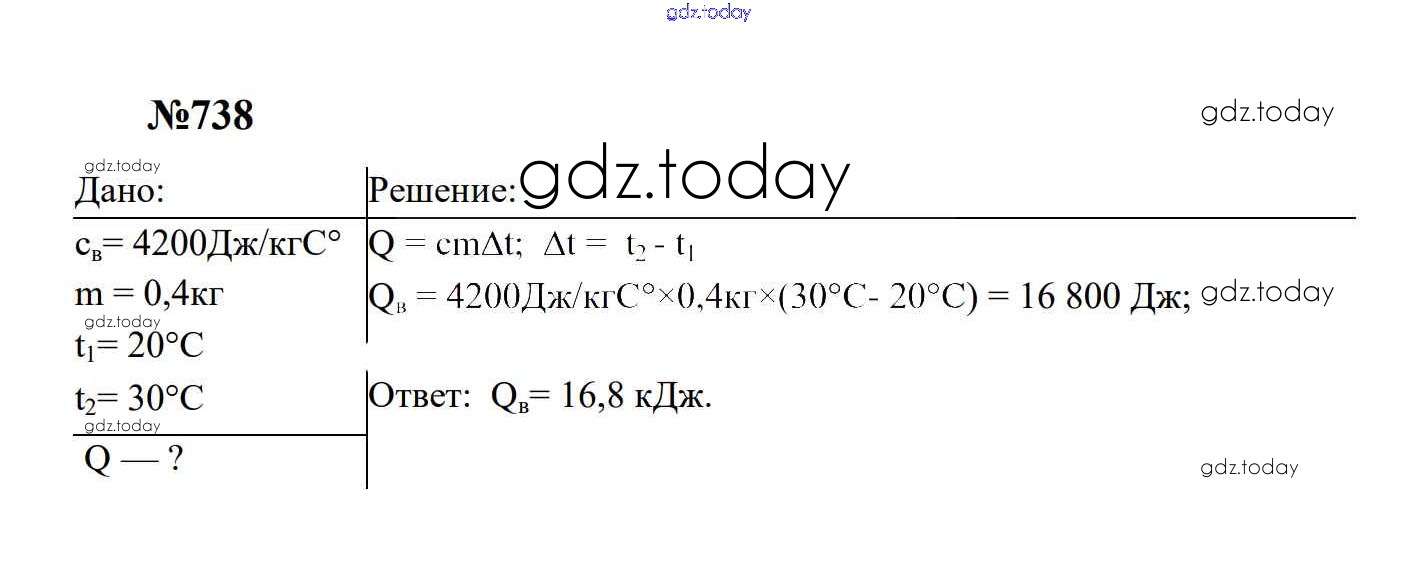 Ответы к Тепловые явления Решение. 8 класс 738 Сборнику задач по Физике для 7-9 класса Перышкин, Лонцова Экзамен УМК 2016