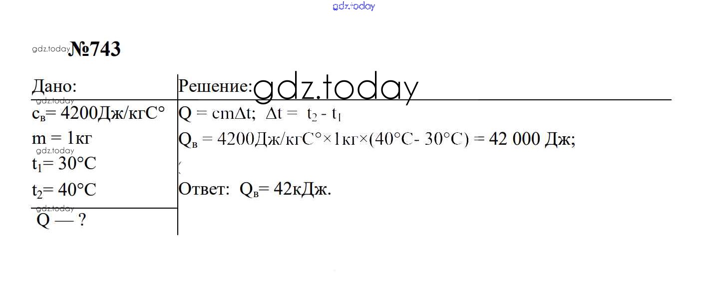 Ответы к Тепловые явления Решение. 8 класс 743 Сборнику задач по Физике для 7-9 класса Перышкин, Лонцова Экзамен УМК 2016