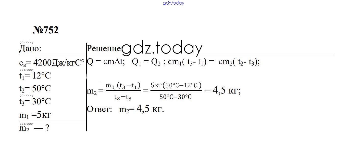 Ответы к Тепловые явления Решение. 8 класс 752 Сборнику задач по Физике для 7-9 класса Перышкин, Лонцова Экзамен УМК 2016