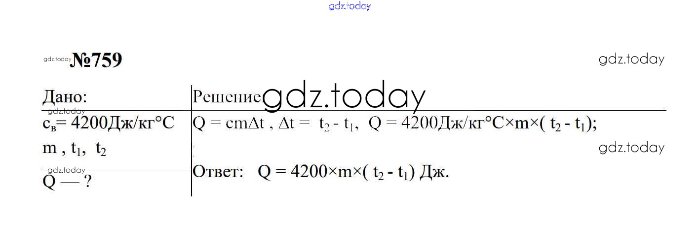Ответы к Тепловые явления Решение. 8 класс 759 Сборнику задач по Физике для 7-9 класса Перышкин, Лонцова Экзамен УМК 2016