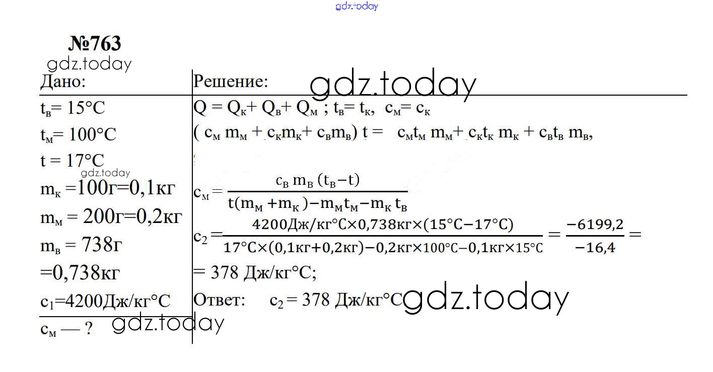 Ответы к Тепловые явления Решение. 8 класс 763 Сборнику задач по Физике для 7-9 класса Перышкин, Лонцова Экзамен УМК 2016