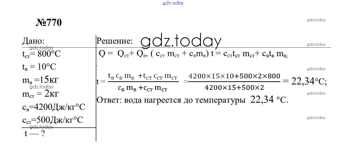 На страницах сайта gdz.today вы найдете учебный и вспомогательный материал, направленный на улучшения знаний школьной программы. ГДЗ - онлайн мир знаний Тепловые явления Решение. 8 класс 770 Сборнику задач по Физике для 7-9 класса Перышкин, Лонцова Экзамен УМК 2016