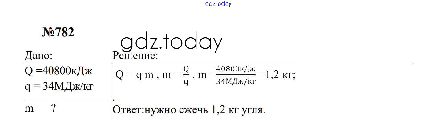 Ответы к Тепловые явления Решение. 8 класс 782 Сборнику задач по Физике для 7-9 класса Перышкин, Лонцова Экзамен УМК 2016