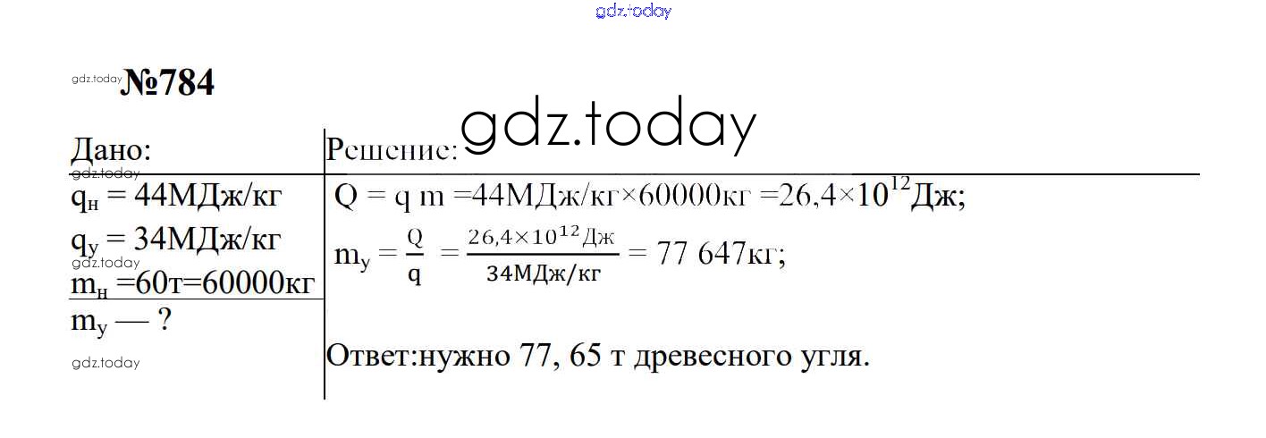 Ответы к Тепловые явления Решение. 8 класс 784 Сборнику задач по Физике для 7-9 класса Перышкин, Лонцова Экзамен УМК 2016