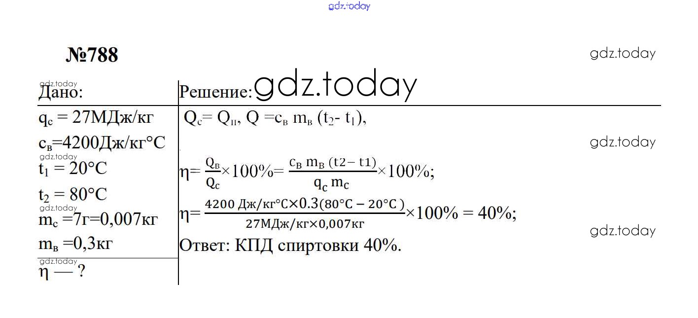Ответы к Тепловые явления Решение. 8 класс 788 Сборнику задач по Физике для 7-9 класса Перышкин, Лонцова Экзамен УМК 2016
