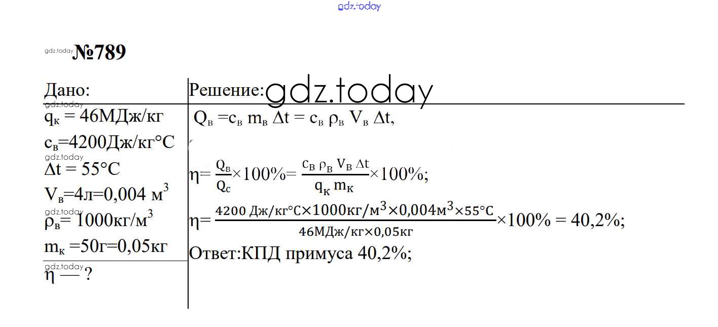 Ответы к Тепловые явления Решение. 8 класс 789 Сборнику задач по Физике для 7-9 класса Перышкин, Лонцова Экзамен УМК 2016