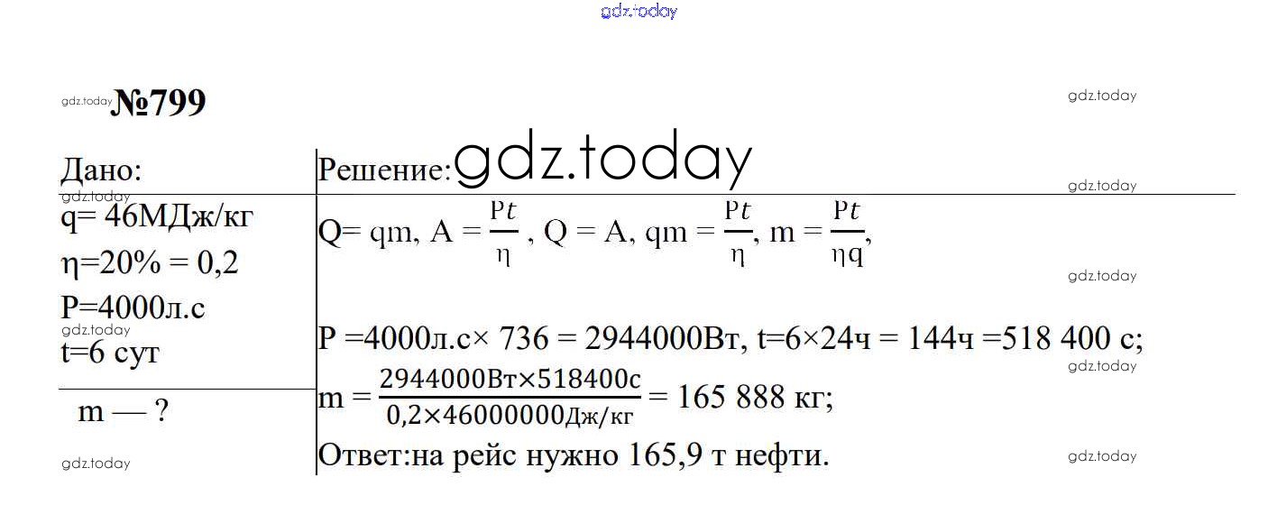 Ответы к Тепловые явления Решение. 8 класс 799 Сборнику задач по Физике для 7-9 класса Перышкин, Лонцова Экзамен УМК 2016