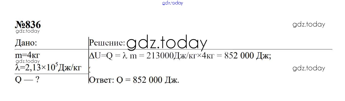 Ответы к Тепловые явления Решение. 8 класс 836 Сборнику задач по Физике для 7-9 класса Перышкин, Лонцова Экзамен УМК 2016