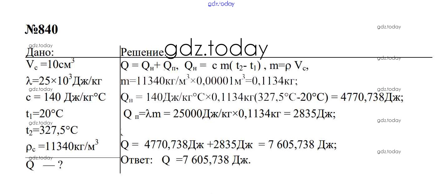 На страницах сайта gdz.today вы найдете учебный и вспомогательный материал, направленный на улучшения знаний школьной программы. ГДЗ - онлайн мир знаний Тепловые явления Решение. 8 класс 840 Сборнику задач по Физике для 7-9 класса Перышкин, Лонцова Экзамен УМК 2016