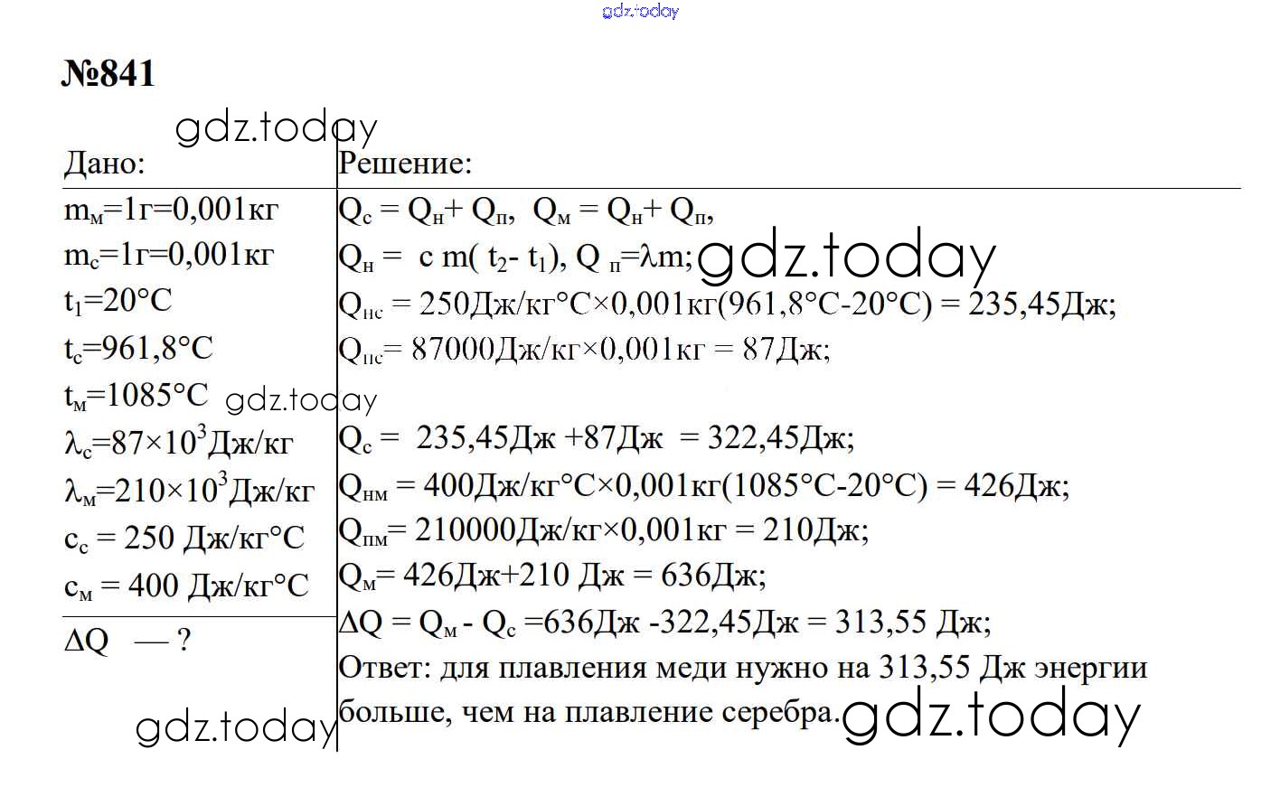 На страницах сайта gdz.today вы найдете учебный и вспомогательный материал, направленный на улучшения знаний школьной программы. ГДЗ - онлайн мир знаний Тепловые явления Решение. 8 класс 841 Сборнику задач по Физике для 7-9 класса Перышкин, Лонцова Экзамен УМК 2016