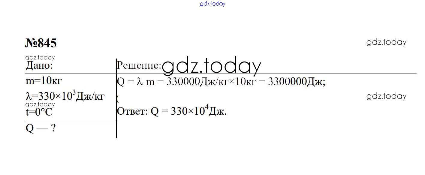 Ответы к Тепловые явления Решение. 8 класс 845 Сборнику задач по Физике для 7-9 класса Перышкин, Лонцова Экзамен УМК 2016