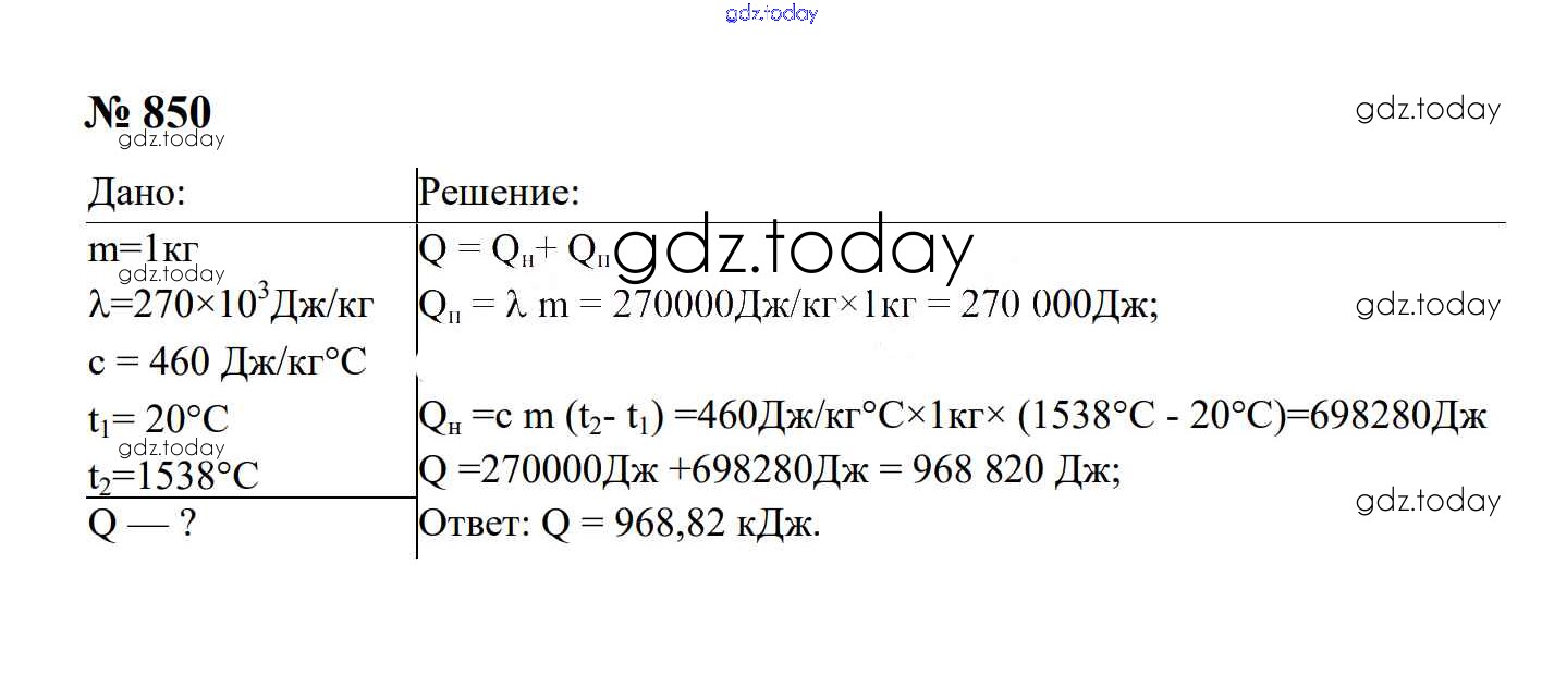 На страницах сайта gdz.today вы найдете учебный и вспомогательный материал, направленный на улучшения знаний школьной программы. ГДЗ - онлайн мир знаний Тепловые явления Решение. 8 класс 850 Сборнику задач по Физике для 7-9 класса Перышкин, Лонцова Экзамен УМК 2016