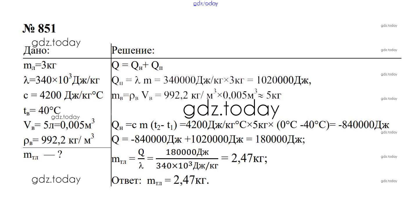 На страницах сайта gdz.today вы найдете учебный и вспомогательный материал, направленный на улучшения знаний школьной программы. ГДЗ - онлайн мир знаний Тепловые явления Решение. 8 класс 851 Сборнику задач по Физике для 7-9 класса Перышкин, Лонцова Экзамен УМК 2016