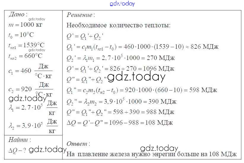 Ответы к Тепловые явления Решение 8 класс 851 Сборнику задач по Физике для 7-9 класса Перышкин, Лонцова Экзамен УМК 2016