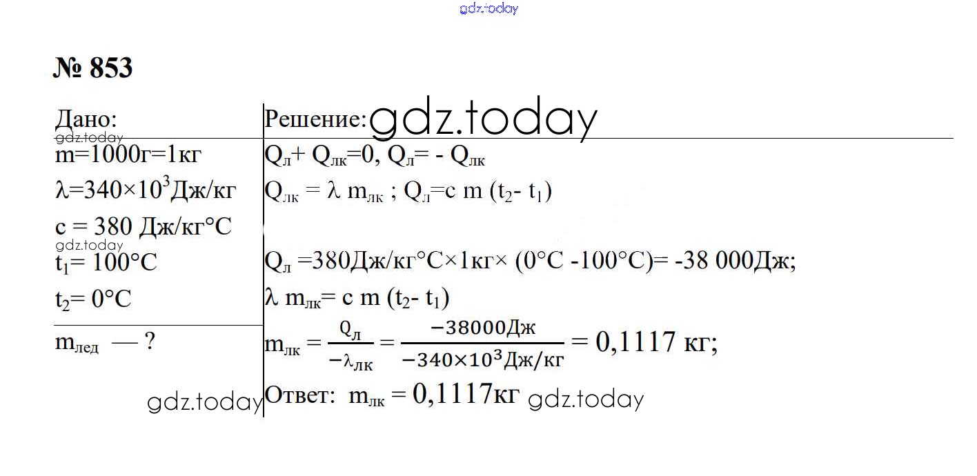На страницах сайта gdz.today вы найдете учебный и вспомогательный материал, направленный на улучшения знаний школьной программы. ГДЗ - онлайн мир знаний Тепловые явления Решение. 8 класс 853 Сборнику задач по Физике для 7-9 класса Перышкин, Лонцова Экзамен УМК 2016