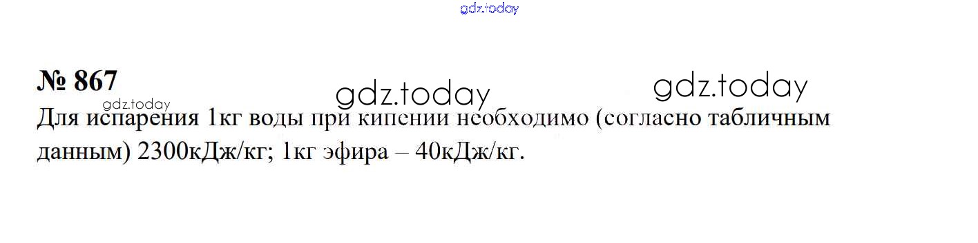 На страницах сайта gdz.today вы найдете учебный и вспомогательный материал, направленный на улучшения знаний школьной программы. ГДЗ - онлайн мир знаний Тепловые явления Решение. 8 класс 867 Сборнику задач по Физике для 7-9 класса Перышкин, Лонцова Экзамен УМК 2016