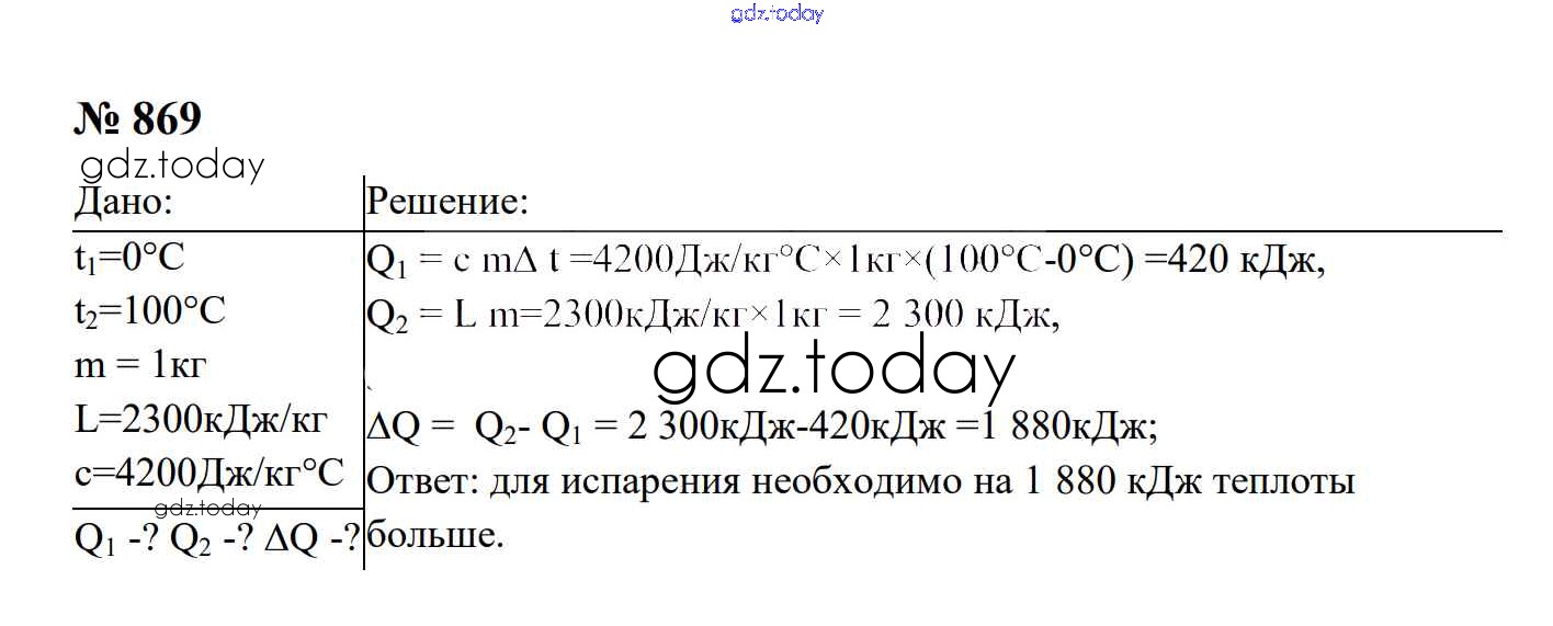 Ответы к Тепловые явления Решение. 8 класс 869 Сборнику задач по Физике для 7-9 класса Перышкин, Лонцова Экзамен УМК 2016