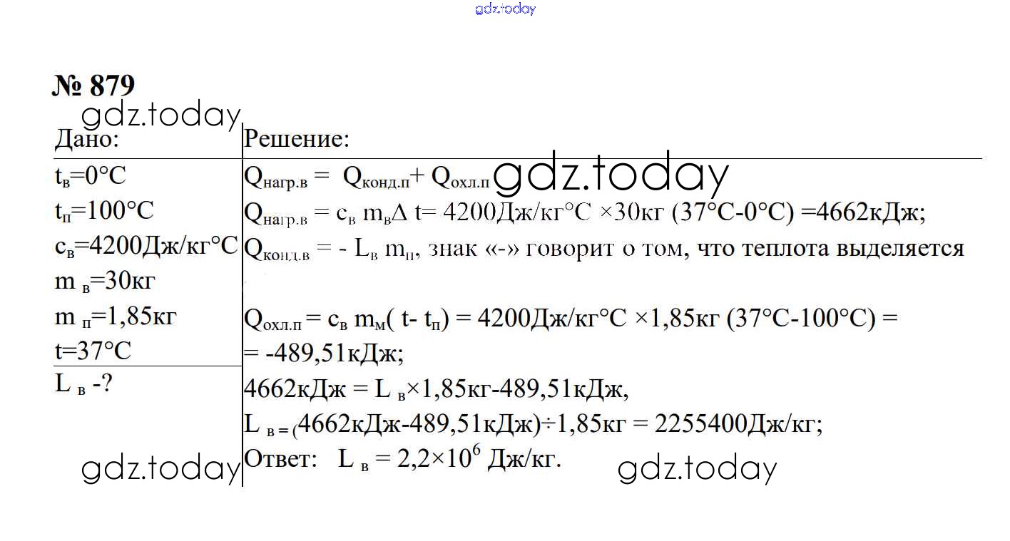 На страницах сайта gdz.today вы найдете учебный и вспомогательный материал, направленный на улучшения знаний школьной программы. ГДЗ - онлайн мир знаний Тепловые явления Решение. 8 класс 879 Сборнику задач по Физике для 7-9 класса Перышкин, Лонцова Экзамен УМК 2016