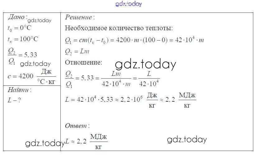 На страницах сайта gdz.today вы найдете учебный и вспомогательный материал, направленный на улучшения знаний школьной программы. ГДЗ - онлайн мир знаний Тепловые явления Решение 8 класс 892 Сборнику задач по Физике для 7-9 класса Перышкин, Лонцова Экзамен УМК 2016