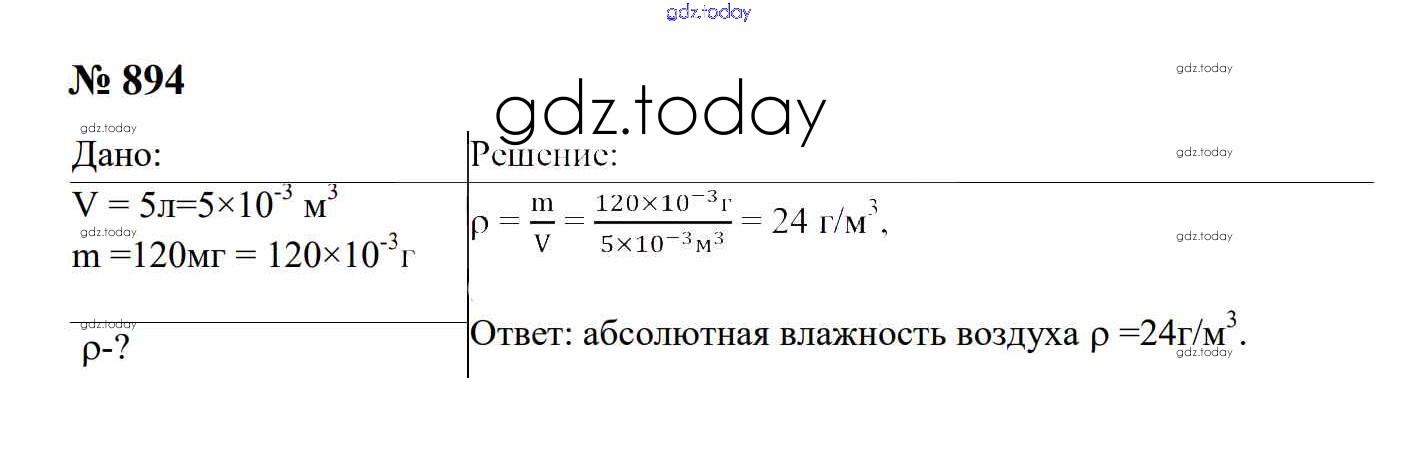 Ответы к Тепловые явления Решение. 8 класс 894 Сборнику задач по Физике для 7-9 класса Перышкин, Лонцова Экзамен УМК 2016