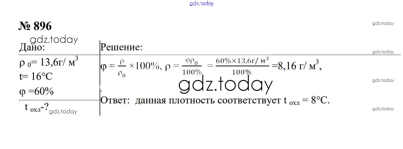 На страницах сайта gdz.today вы найдете учебный и вспомогательный материал, направленный на улучшения знаний школьной программы. ГДЗ - онлайн мир знаний Тепловые явления Решение. 8 класс 896 Сборнику задач по Физике для 7-9 класса Перышкин, Лонцова Экзамен УМК 2016