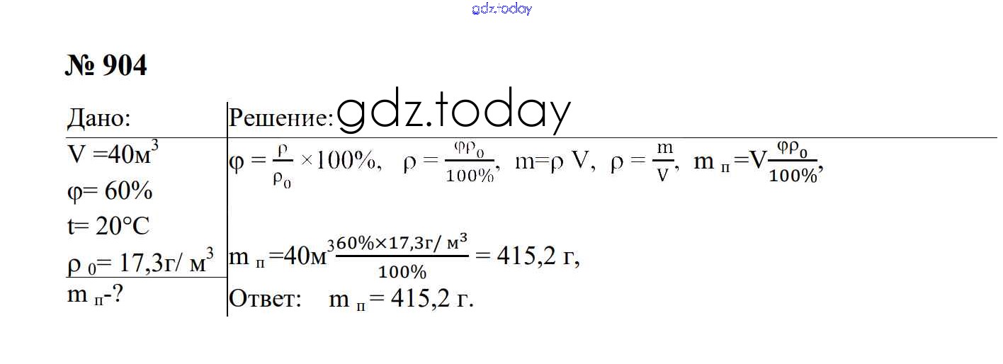 На страницах сайта gdz.today вы найдете учебный и вспомогательный материал, направленный на улучшения знаний школьной программы. ГДЗ - онлайн мир знаний Тепловые явления Решение. 8 класс 904 Сборнику задач по Физике для 7-9 класса Перышкин, Лонцова Экзамен УМК 2016